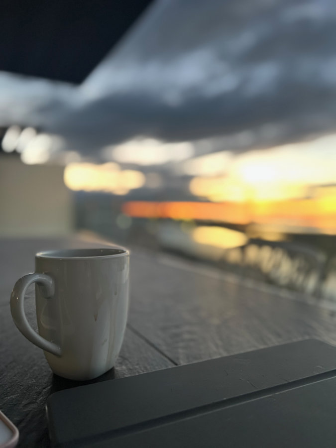 Weil es so warm war und ich auch nicht so gut gehen kann, verbrachten wir den Nachmittag auf unserer wunderbaren Terrasse, dösende, lesend, schlafend … und den Ausblick genießend.