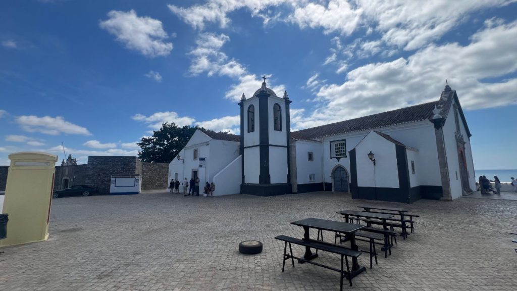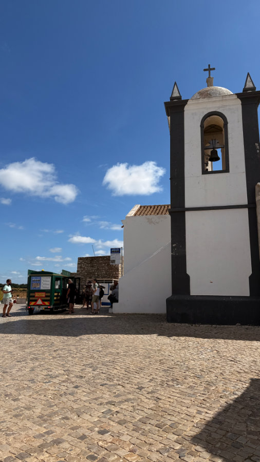 Irgendwie war es sehr warm, und sehr voll … es gab sogar für Ausflügler einen Transportbus aus den Nachbarorten. Deshalb schenkten wir uns einen Spaziergang runter zum Strand und blieben oben an der Kirche und genossen einfach nur den großartigen Ausblick. Scharen von Familien, bepackt mit Badesachen, Liegen und was man sonst am Strand so braucht … aber dank der Weite des Strandes verläuft sich das dann auch schnell.