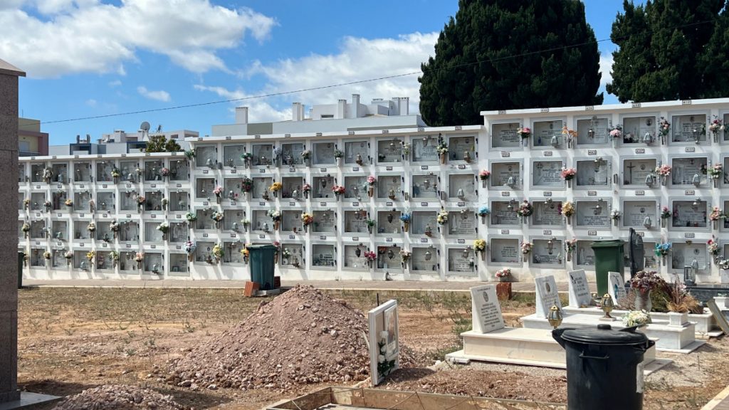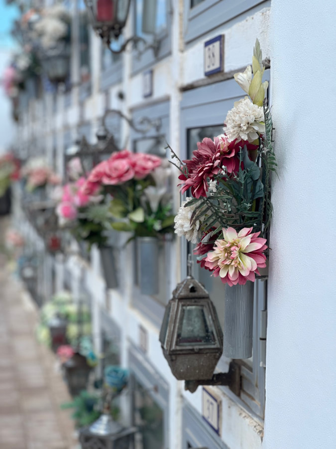Wir gingen noch zum Friedhof – in Porugal beerdigt man anders. Ganz anders. Wände wie Regal, jedes Fach verschlossen, mit Bildchen und Plastikblumen. Und andere Familien hatten kleine Kabinen, in denen dann mehrere Särge waren – jedenfalls sehenswert irgendwie.