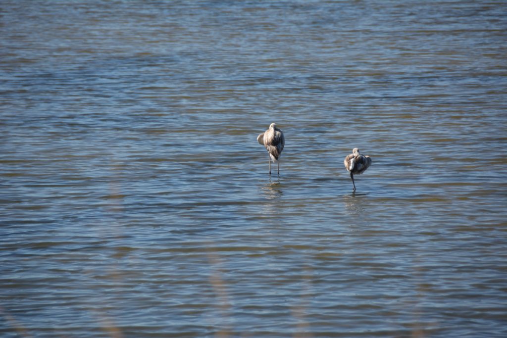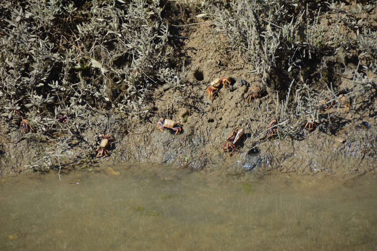 Einige Flamingos waren unterwegs und viele Watvögel, und in den Salzwiesen tummelten sich tausende Krebse. Es sind wirklich unglaublich viele! Da möchte man nicht ins Wasser fallen – ehrlich.